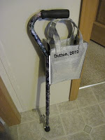 I buy lots of self-sticking Velcro because is makes me independent and safe. The 1st time I used Velcro was to stop a tote bag from banging against my cane when I walked. The white line shows where the